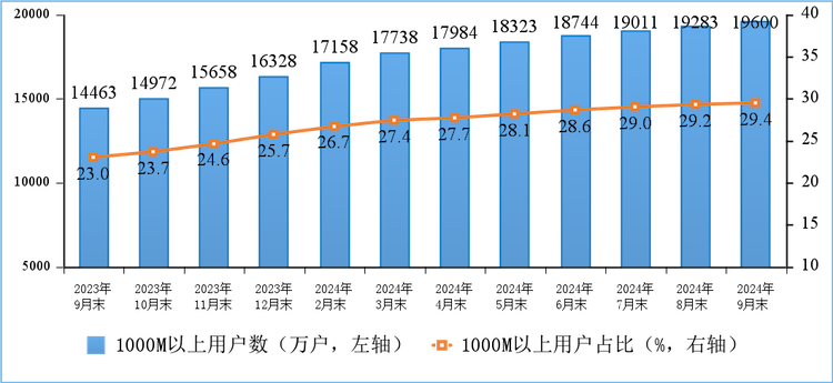 我国千兆用户数逼近 2 亿户,占总用户数 29.4%